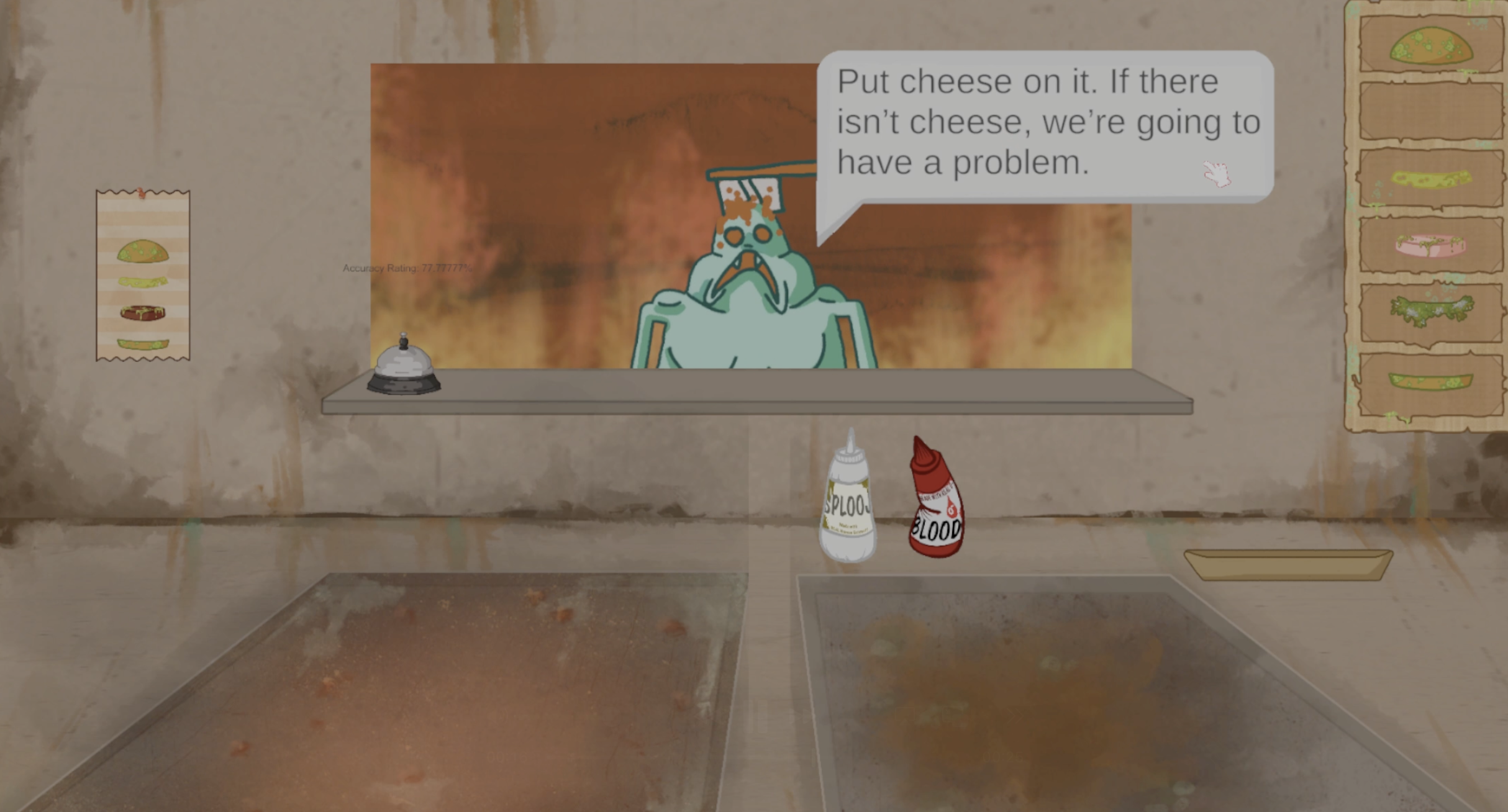 After accidentally assassinating the President with your “secret sauce”, you’ve been sent to Burgertory, a burger joint located in Purgertory run by Death himself.